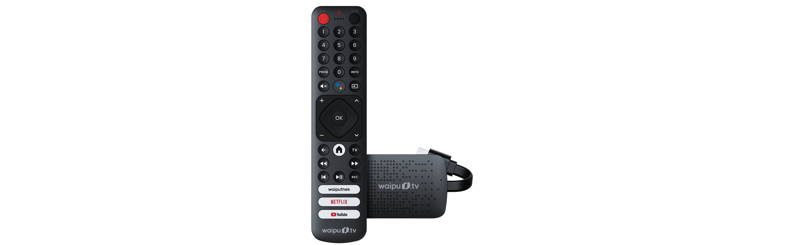 Der Streaming-Stick verfügt über erstklassiges Entertainment, Video on Demand und Free-TV Sender in brillanter HD-Qualität, ergänzt um die waiputhek mit über 30.000 Filmen und Serien. Darüber hinaus sind weitere Unterhaltungs-Apps, wie Netflix oder YouTube, sowie alle bekannten Sendermediatheken bereits vorinstalliert. Dank seiner kompakten Größe verschwindet der Stick einfach hinter dem Fernseher. Mit dem waipu.tv 4K Stick wird jeder Fernseher zum Smart-TV, stabiler Fernsehempfang einfach über das WLAN.